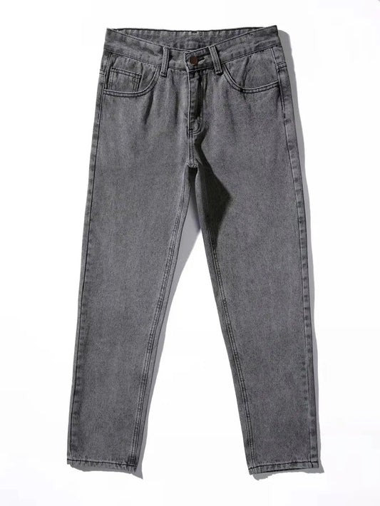 2025 New Korean Men's Casual Long Jeans Classic Man Straight Denim Wide-leg Pants Solid Color Light Blue Grey Black 4XL