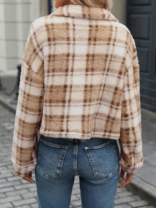 Veste à carreaux boutonnée à col et manches longues