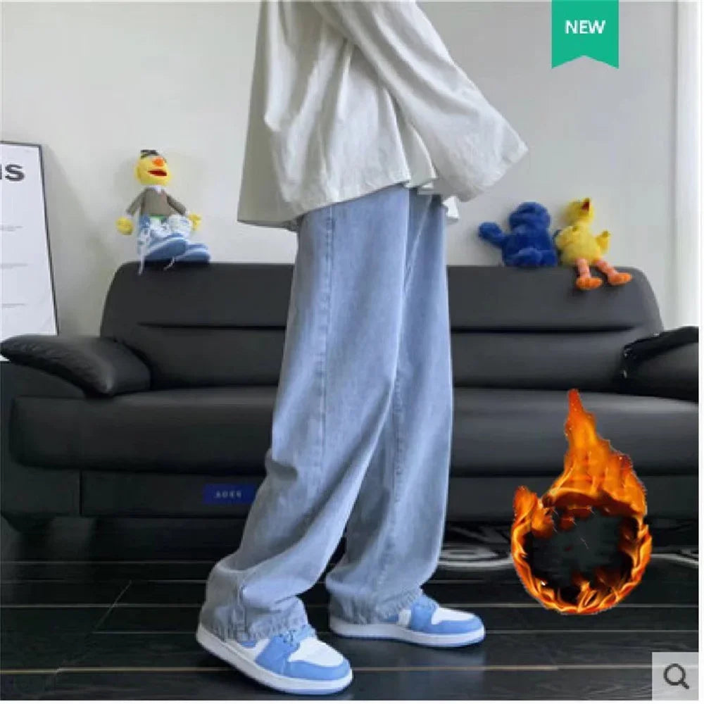 Damen-Jeans aus dickem Fleece mit gekreuztem Bund und weitem Bein, Mom-Jeans, gerade geschnitten, Vintage-Baggy-Jeans, Denim, Winterhose 2025