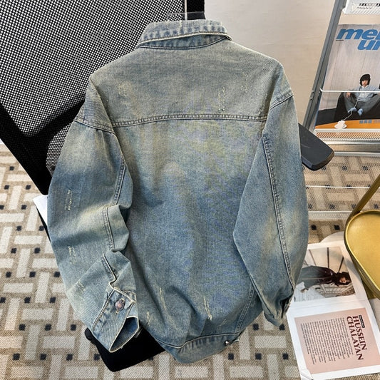 Style Winter Casual Streetwear Washed Vintage Splatter Denim Pants Men Straight Loose Oversize Versatile Tapered Jeans