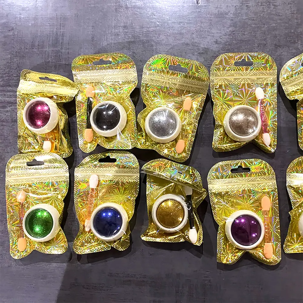 1/2pcs Silver Gold Metal Chrome Nail Powder Mirror Effect Metallic Nail Glitter Pigment Approx 0.3g Nail Art Rubbing Chrome Dust