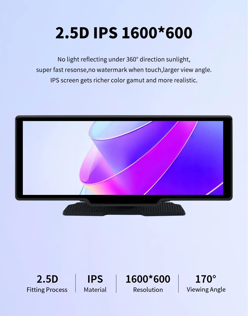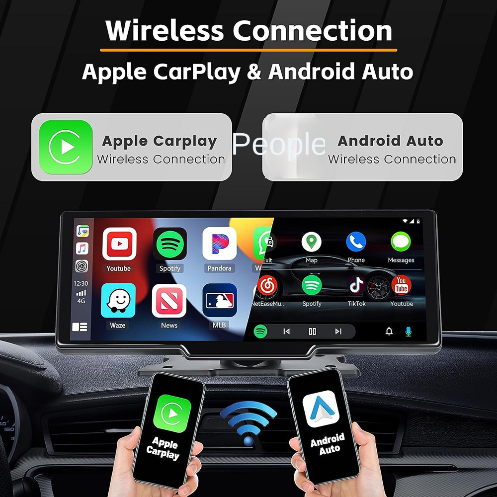 10.26-inch Portable Car Central Control Smart Screen with Wireless CarPlay, Android Auto, Bluetooth, and AHD Backup Camera